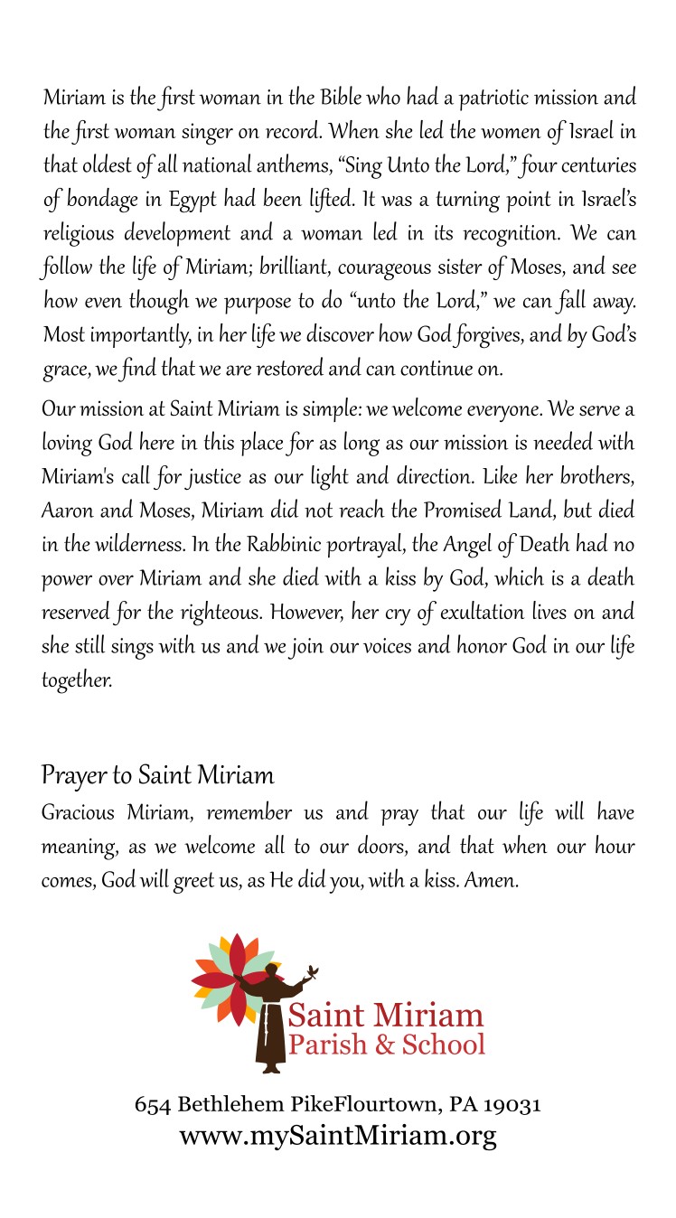 Home / Memorial / Saint Miriam Prayer Cards Saint Miriam Prayer Cards$5.00 Package of 20 for donation of $5.00 Size Choose an optionSmallLargeClear Saint Miriam Prayer Cards quantity Add to cart SKU: SM-007 Categories: Mass, Memorial, Prayer Description Description Package of 20 for donation of $5.00 Related products Altar Flowers Read more This product has multiple variants. The options may be chosen on the product page Rosaries $25.00 Select options This product has multiple variants. The options may be chosen on the product page The Saint Miriam Holding Cross™ $65.00 Add to cart Mass Cards $12.75 Add to cart